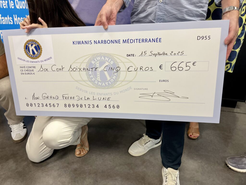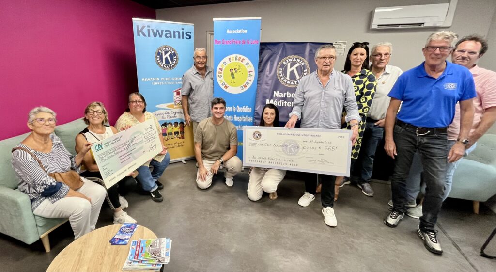 Ce lundi 17 septembre, nous avons eu la joie et le plaisir de rencontrer certains membres des clubs Kiwanis de Gruissan et de Narbonne Méditerranée, pour une généreuse remise de don de 1330€ qui vont être ajoutés à la cagnotte « Projet Hôpital Sensoriel ».